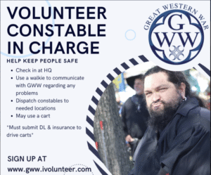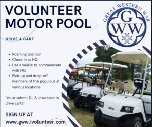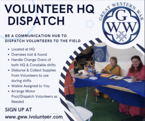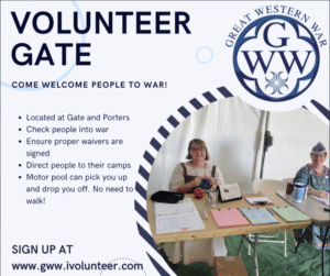 Grab a volunteer card from Headquarters when you arrive at war and find out more about the different types of activities you can do to help out. This war runs on a volunteer staff and we wouldn’t nearly have all of the fun we do without them!
